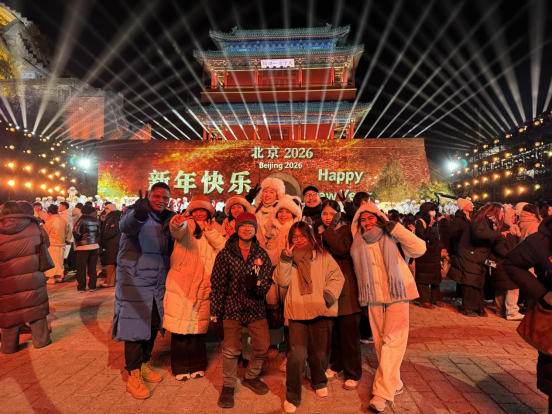 2025年12月31日晚,由北京市文化和旅游局主办、北京广播电视台承办的“钟鼓齐鸣 京彩启程”2026北京新年倒计时活动在居庸关长城盛大举行。我校国际文化交流学院选派10名国际学生代表与现场中外嘉宾及观众共同在雄伟的长城之巅迎接2026年的到来。