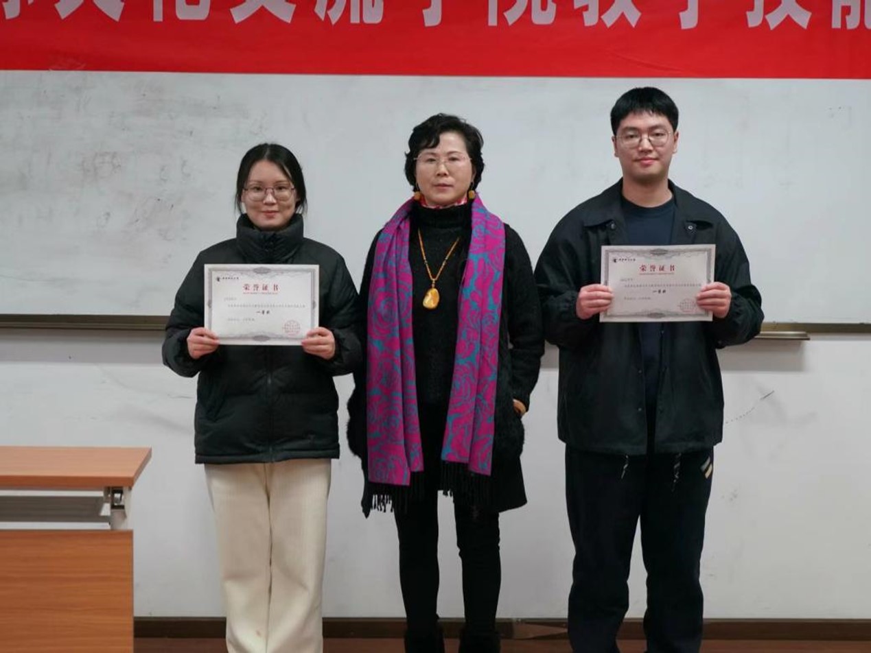 王国庆教授和王诚文老师为三等奖获得者颁奖