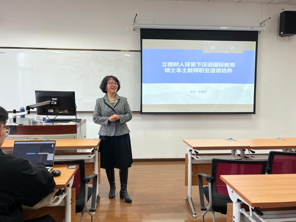 2月14日,国际文化交流学院直属党支部书记、院长李春玲在中财大厦案例9教室以“立德树人背景下汉语国际教育硕士本土教师职业道德培养”为主题,为汉语国际教育专业中外研究生讲授了开学第一堂思政课。