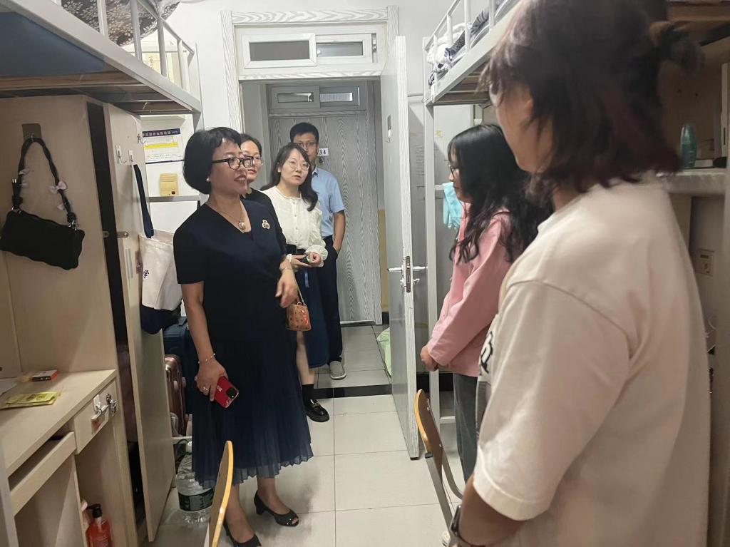 报到当天,院长李春玲、副院长陈香、张碘一同走访新生宿舍,欢迎新生的到来,并与新生进行亲切交谈。领导和老师们的细心关怀温暖了每一位新同学的心。