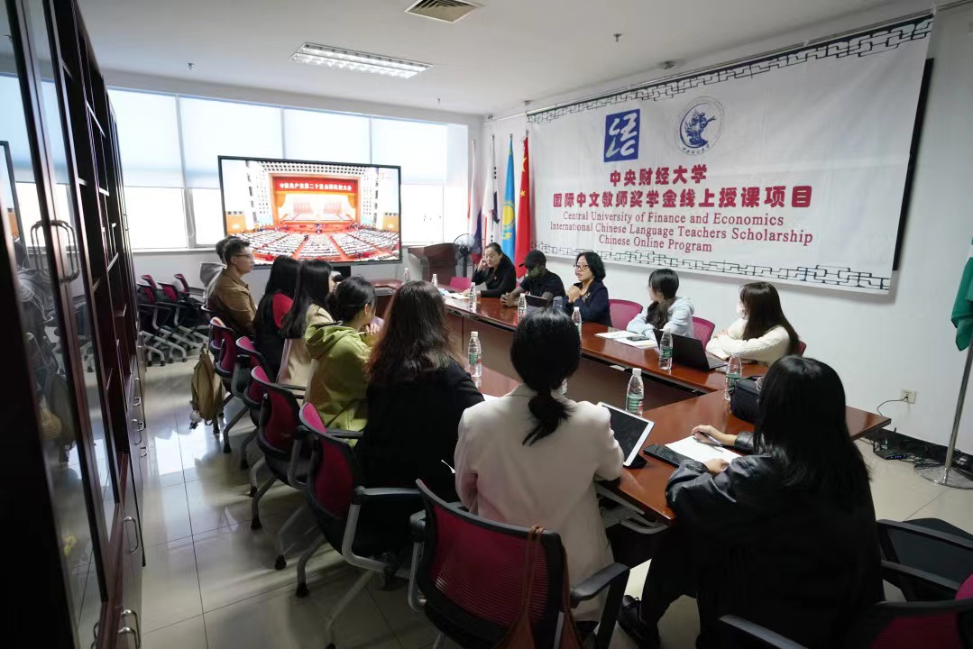 10月16日上午,中国共产党第二十次全国代表大会在北京人民大会堂隆重开幕,习近平总书记代表第十九届中央委员会向党的二十大作报告。国际文化交流学院党支部认真组织全体党员、入党积极分子、全体教职工、中国学生和留学生代表收看党的二十大开幕会直播。党支部书记李春玲在学院1032会议室主持本次活动。
