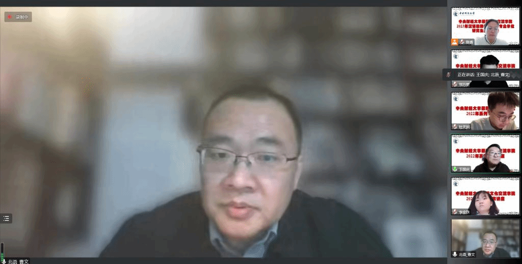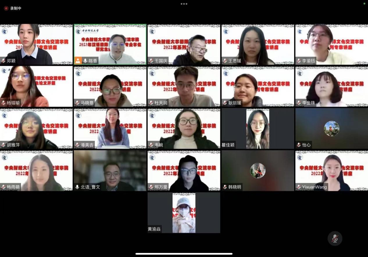 2022年11月29日14时,北京语言大学曹文教授在我院成功开展了“语音教学面面观”专题线上讲座。本次讲座在腾讯会议平台举行,由国际文化交流学院陈香副院长主持。
