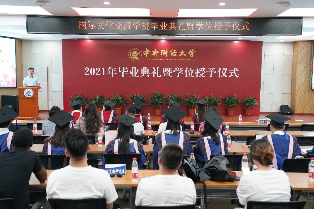 7月2日下午,国际文化交流学院2021年毕业典礼暨学位授予仪式在学院南路校区主教学楼114报告厅隆重举行。国际文化交流学院院长李春玲,副院长陈香,研究生指导教师原绍锋、王国庆、王艺璇等全院教职工,全体2021届毕业生和2020级研究生参加了本次毕业典礼。典礼由国际文化交流学院副院长张碘主持。