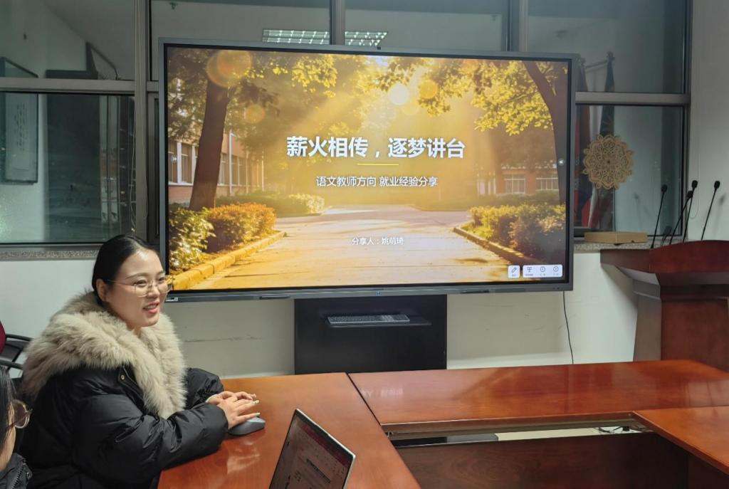 1月8日,国际文化交流学院特邀24届毕业生、现任职于北京一零一中昌平实验学校的姚萌琦校友,以“薪火相传,逐梦讲台”为主题开展就业交流培训会。国际文化交流学院副院长陈香、党总支常务副书记刘伟喆,以及2025级国际中文教育专业硕士研究生参加本次活动。