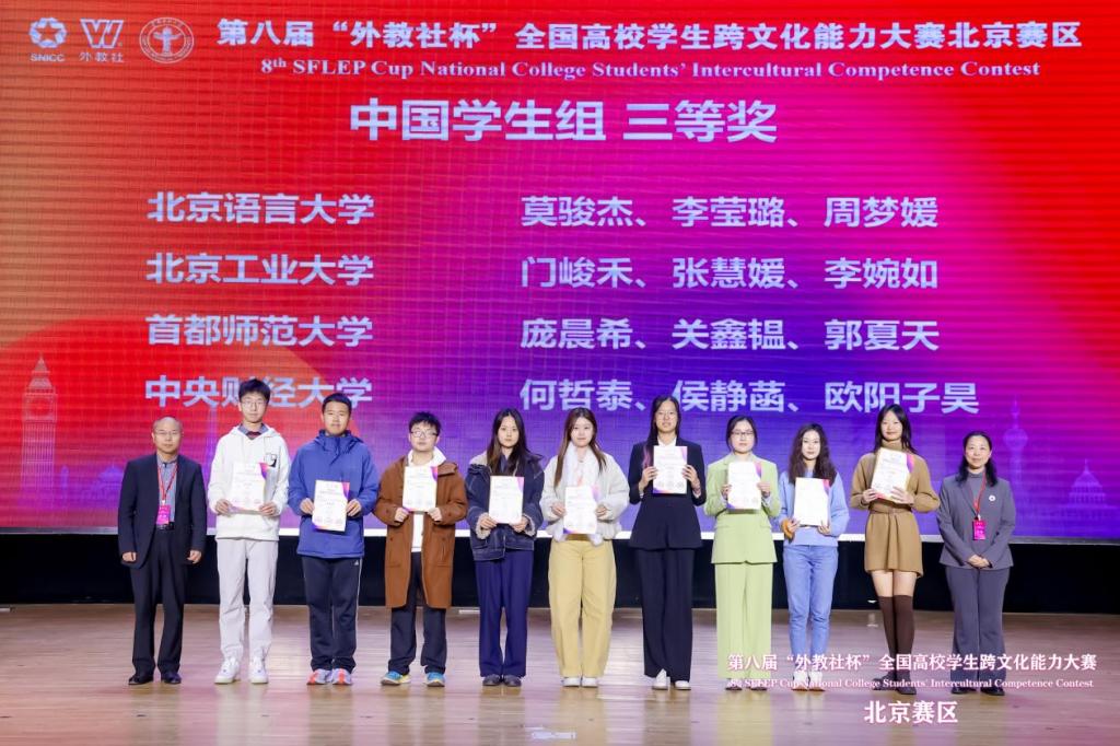 11月2日,第八届“外教社杯”全国高校学生跨文化能力大赛(北京赛区)举行。我校中外学子凭借深厚的跨文化素养与出色的现场表现,在首次参赛的情况下,取得国际学生组一等奖、中国学生组三等奖的优异成绩,学校国际文化交流学院原绍锋、王琳荣获“优秀指导教师奖”。